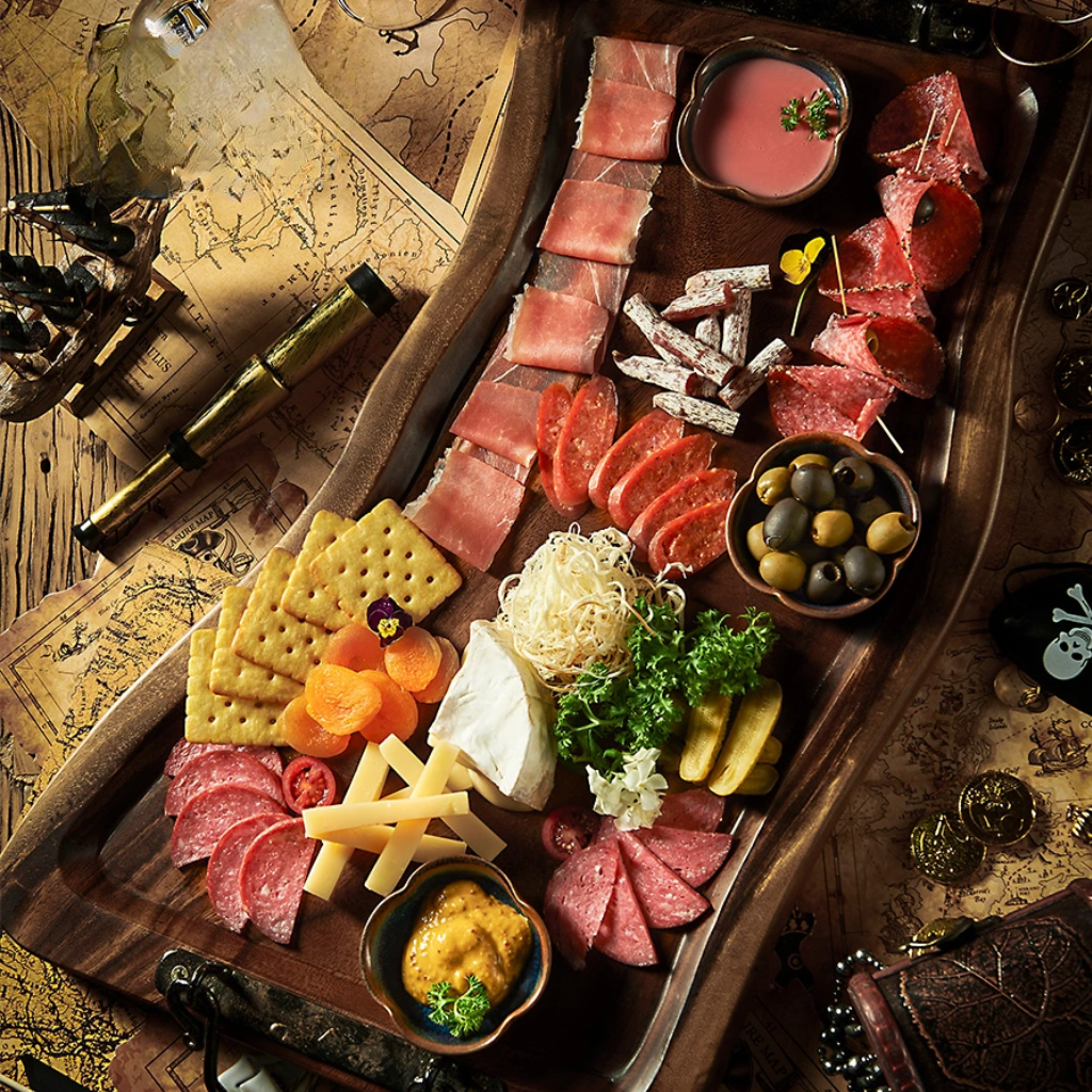 Một khay charcuterie như bản hòa tấu của sắc màu và hương vị, nơi thịt nguội, phô mai và món ăn kèm cùng nhau tạo nên vẻ đẹp tinh tế cho buổi brunch đầy cảm hứng.