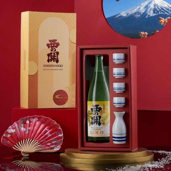 Rượu sake Nishino Seki Gold Leaf có hương vị tinh túy, tinh khiết, nhẹ nhàng. Có công dụng giữ ẩm cho da, hỗ trợ tiêu hóa, dạ dày, tăng cường sức khỏe,... Được thiết kế bởi vàng 24k nguyên chất dát mỏng, tượng trưng cho tài lộ thịnh vượng. Đây là hộp quà tặng tết ý nghĩa dành cho sếp.