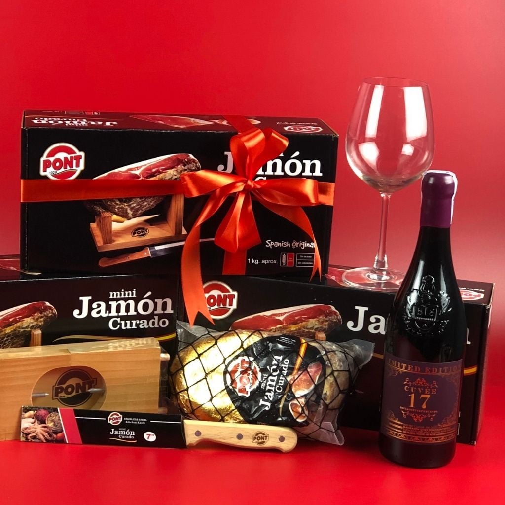 Set quà thượng hạng với đùi heo muối Iberico & rượu vang. Đây là món quà sẽ tạo nên một ấn tượng không thể phai mờ. Đùi heo muối Iberico, một trong những món ăn đắt đỏ và tinh hoa nhất thế giới. Kết hợp cùng một chai vang cao cấp sẽ là lời khẳng định về đẳng cấp và sự trân trọng đặc biệt mà bạn dành cho đối tác.