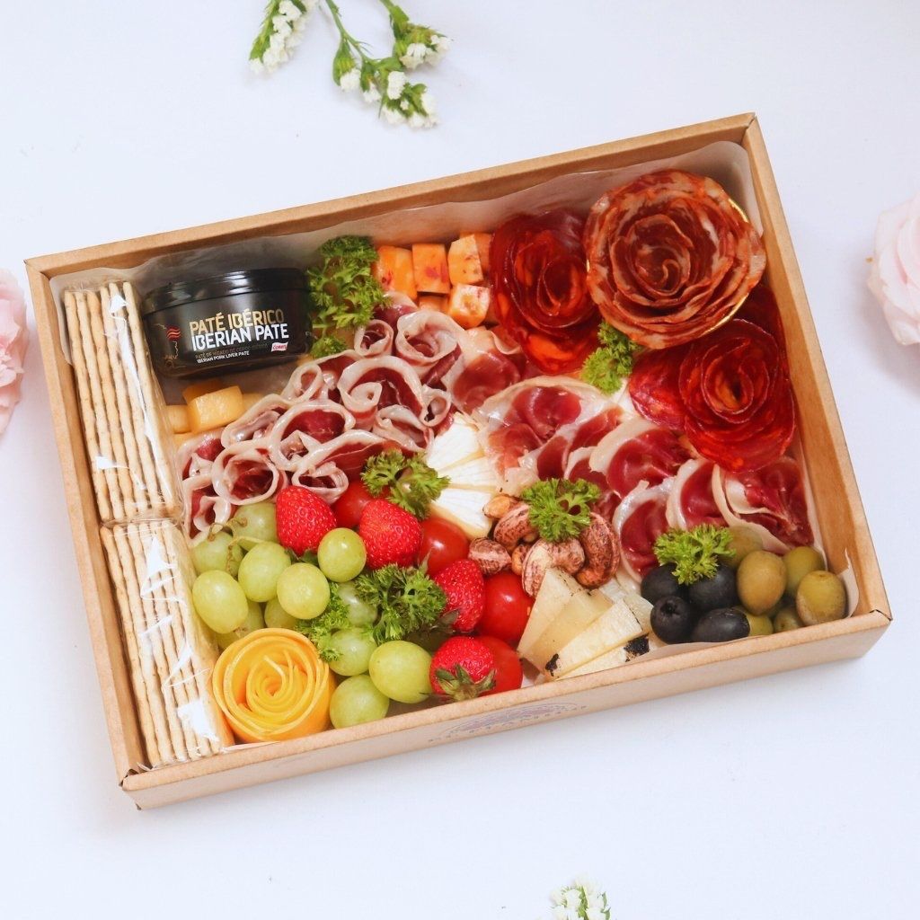 Khay Tapas đầy ắp đồ nguội Iberico, phô mai, trái cây tươi và Pate Iberico hảo hạng từ TheARTERI, mang đến bữa tiệc thị giác và vị giác hoàn hảo.