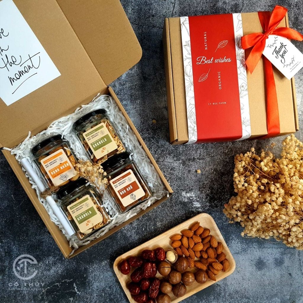 Xu hướng quà tặng sức khỏe luôn được đón nhận nồng nhiệt. Một hộp quà được thiết kế đẹp mắt với các loại hạt cao cấp, trà thảo mộc organic hay mật ong nguyên chất là lời chúc sức khỏe chân thành và thiết thực nhất.