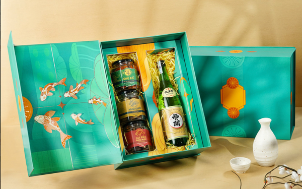 Hộp quà Tết Việt - Nhật 2025 với màu sắc của thiên nhiên kèm biểu tượng của sức khoẻ, sự trường tồn và hạnh phúc. Giúp bạn truyền tải được thông điệp với lời chúc may mắn, trường thọ đến người mình trao tặng. Kết hợp cùng rượu Sake tinh khiết, hậu vị ngọt ngào và đậm đà thơm ngon.