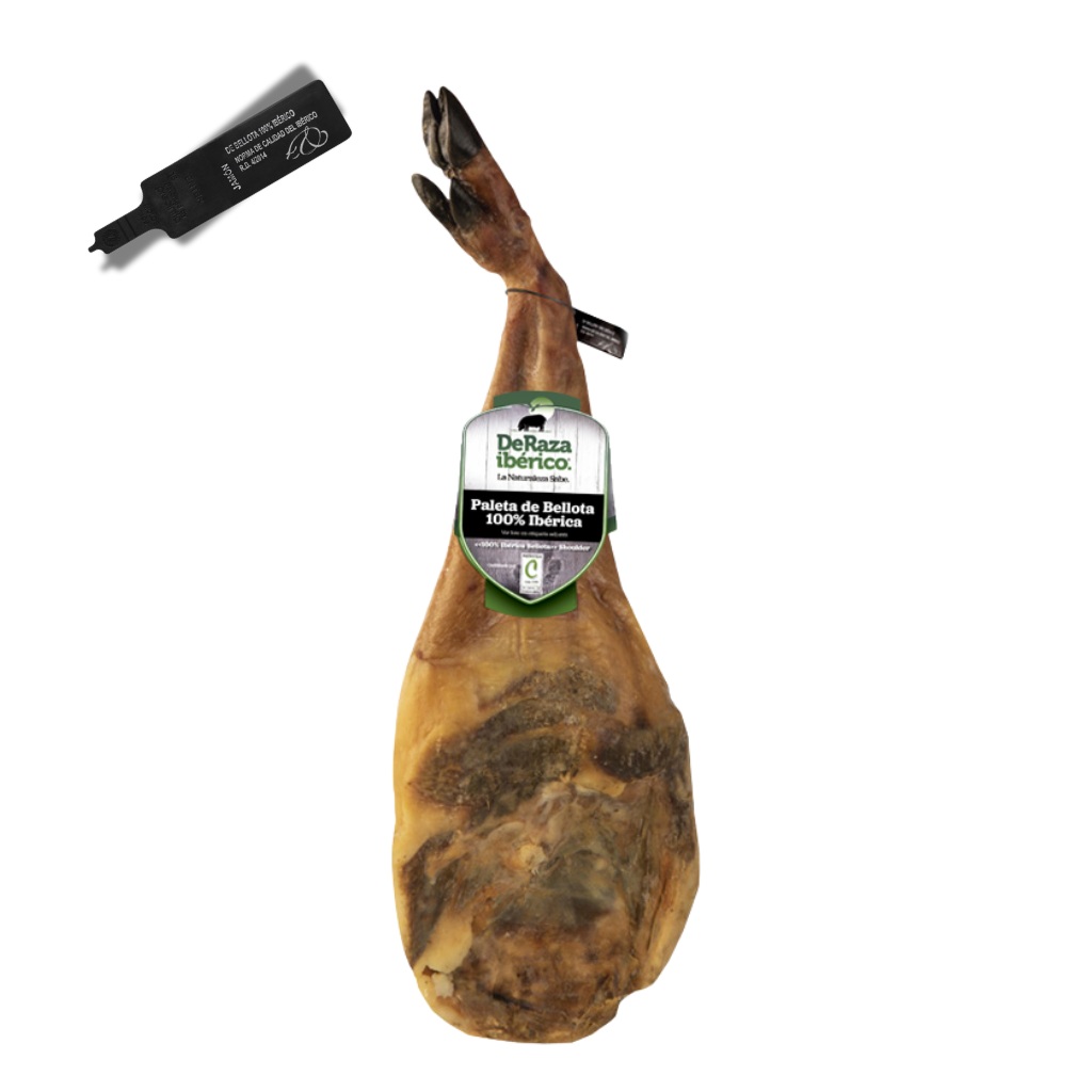 Đùi trước Iberico Bellota DeRaza là tuyệt tác của nghệ thuật ẩm thực Tây Ban Nha. Được chế biến từ giống heo Iberico thuần chủng 100%. Dòng heo đen quý hiếm được nuôi thả tự nhiên trên các cánh đồng rộng lớn. Nơi lý tưởng cho quy trình chăn nuôi truyền thống. Với chế độ ăn 100% hạt dẻ sồi (acorn) tự nhiên và vận động tự do. Thịt heo đạt đến độ hoàn hảo cả về cấu trúc lẫn hương vị.